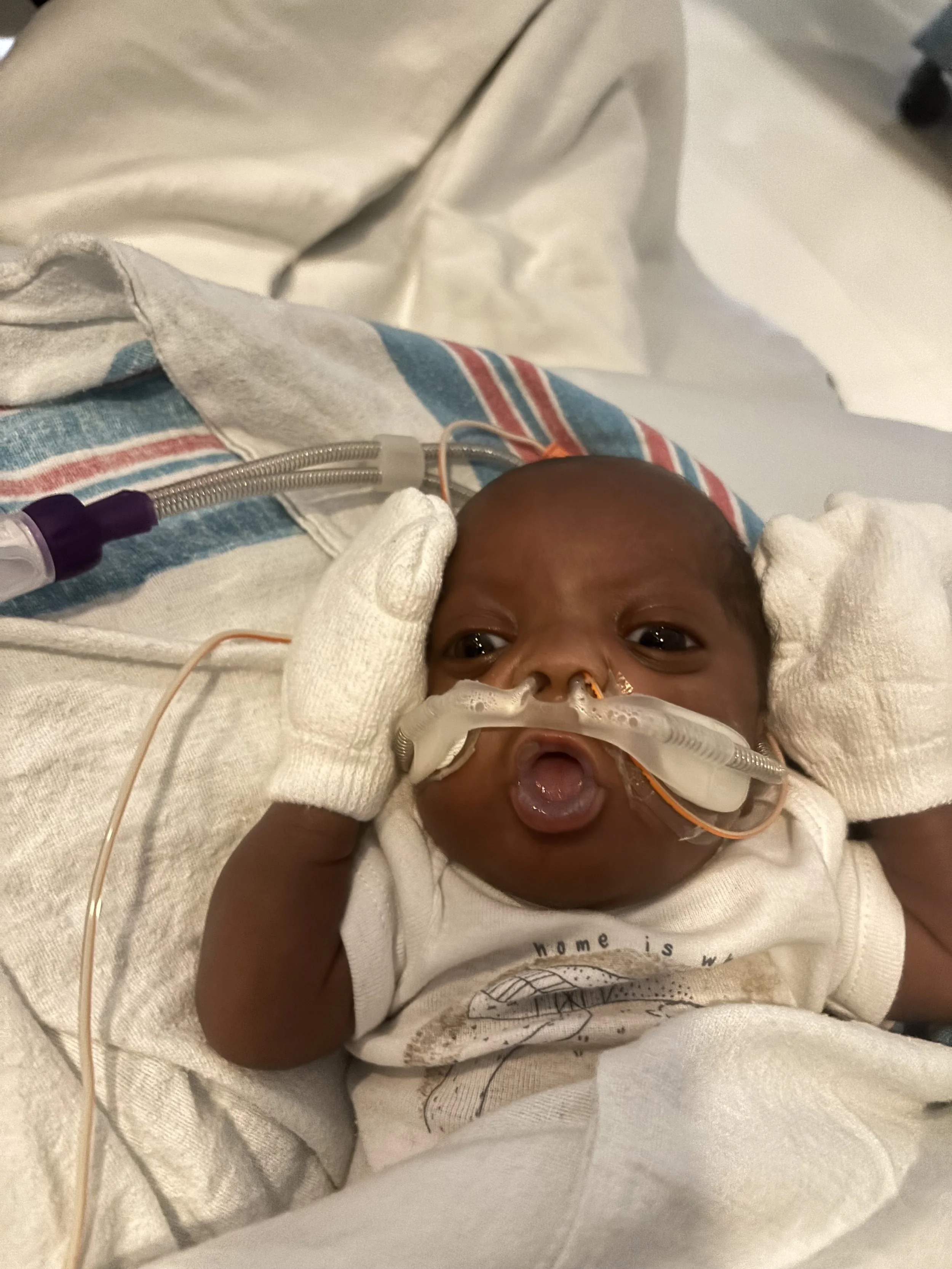 His journey started out rough. Immediately after birth he was intubated and spent a lot of time between ventilators. Being on the oscillator was one of the hardest times for my boy. He had to be continuously sedated with Precedex and fentanyl. He also had to be on TPN to help his weight journey. At one point he had to receive a medication that completely paralyzed his body and do a round of steroids to try to grow and mature his lungs. He also had an infection and pneumonia from being intubated.